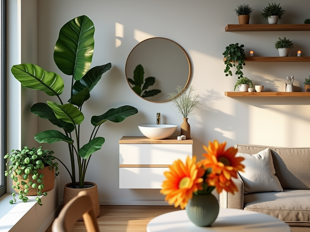 I’ve found fake plants to be an ideal choice for keeping a space looking vibrant without the extra hassle. They don’t need sunlight, watering, or constant care, making them perfect if you’re always on the go or simply don’t want to bother with upkeep. Plus, they stay perpetually lush no matter where you place them—whether it’s a dark corner or a bathroom with no windows.